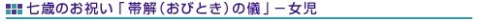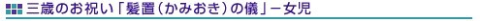 室町時代に入ってからは、かなり複雑になり、日取りも11月15日に定められ、対象年齢も公家は2歳、武家は3歳と決められました。