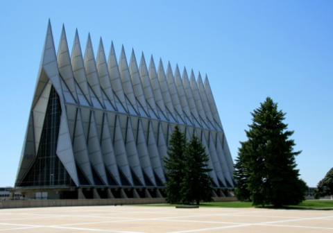 普林斯顿建筑出版社的出版商凯文?利珀特选择了美国空军学院。理由很简单,因为它是“20世纪中期美国现代主义建筑的伟大作品,与传统的学院哥特式或牛津风格毫无关联。”他还补充说道:“很多建筑的外层都覆有一层铝合金材质,以暗示飞机机身,尤其是它的地标性建筑,军校生礼拜堂,无论是在大学建筑还是其他建筑中都可谓是全美最美丽的建筑之一。”