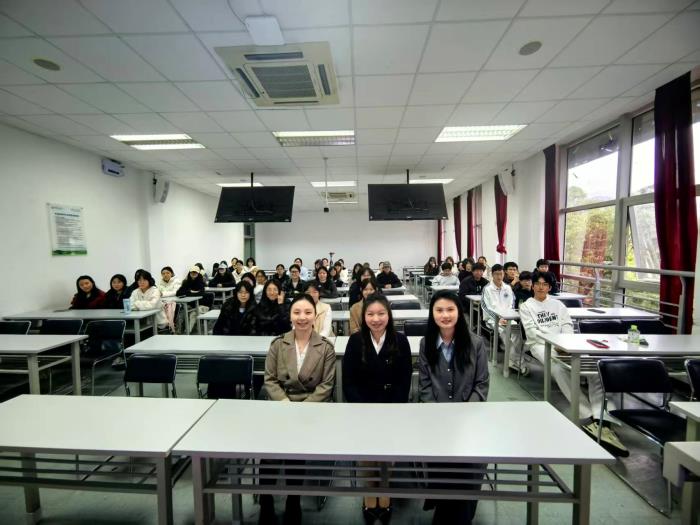 11月14日下午,成都普罗米斯小额贷款有限公司(博民快易贷)为成都东软学院外国语学院日语系2025级学生举办金融知识公益讲座。企业代表刘佳、杨琪、聂康丽三位女士现场授课,外国语学院副院长于洁教授出席本次活动。