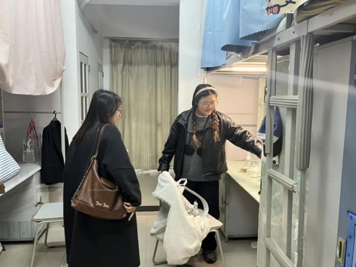 为深化学生公寓规范化管理,打造整洁有序、互助共进的住宿学习环境,2025年11月25日中午,外国语学院素质教师孙子舒、陈金燕、邹怡淳及何雪老师,深入学生宿舍开展“团组织进公寓”专项走访,将组织关怀与精准指导直达学子生活前沿。