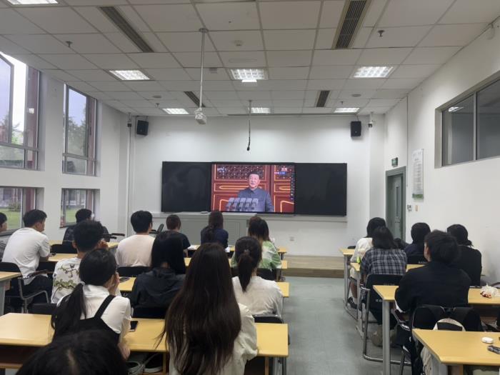 为激发青年学子爱国热情,增强民族自豪感与使命感,2025年9月3日,外国语学院团委组织全体学生干部观看中国人民抗日战争暨世界反法西斯战争胜利80周年阅兵仪式直播。