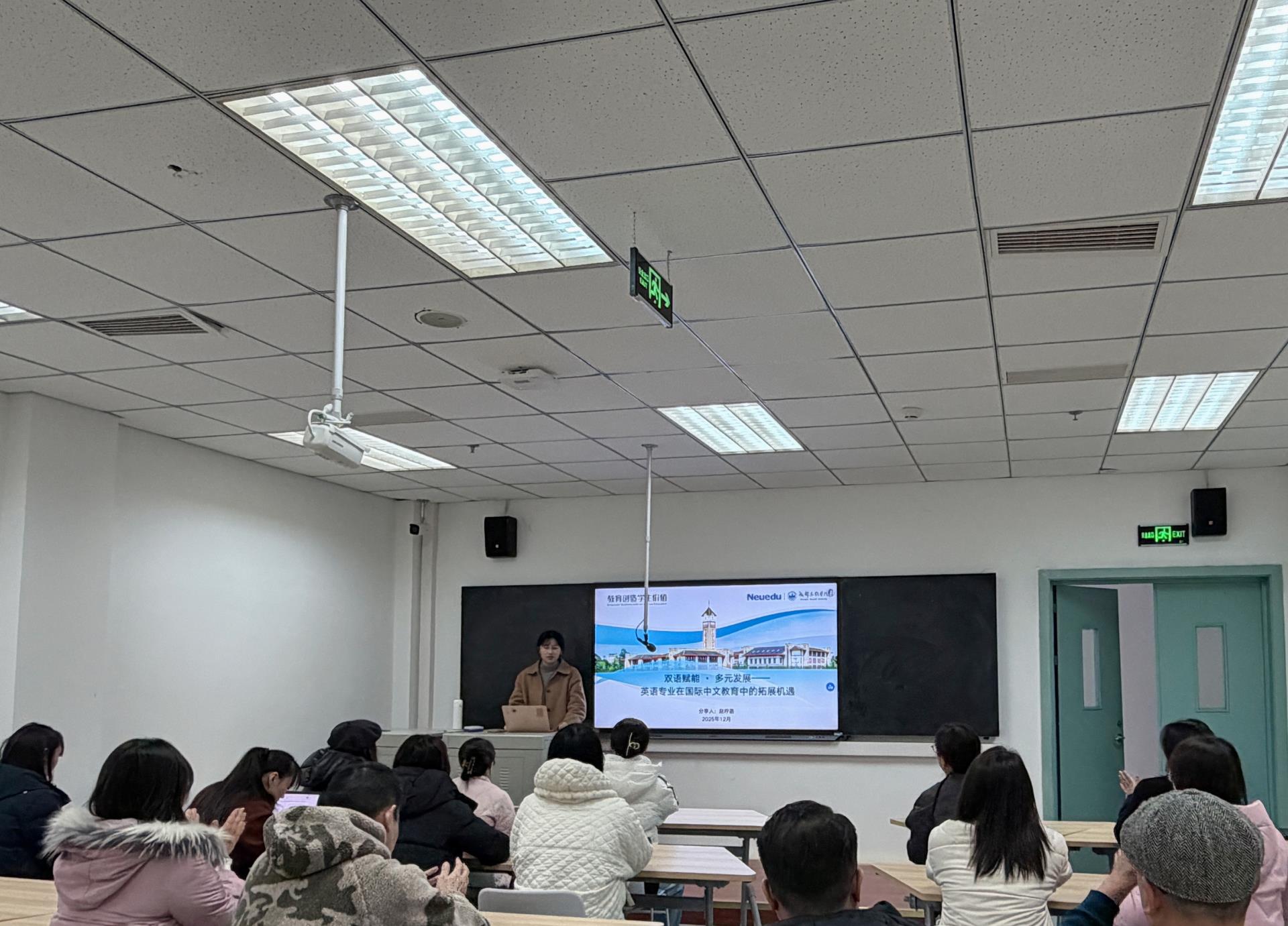 2025年12月29日,外国语学院英语系在C5-101开展了“双语赋能· 多元发展——英语专业在国际中文教育中的拓展机遇”专题教研活动。本次活动由赵咛菡老师主讲,英语系全体教师与会。