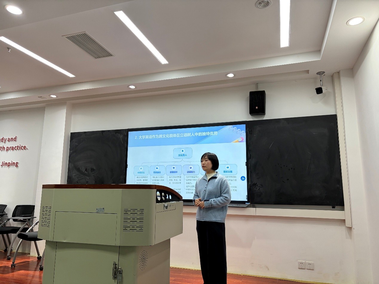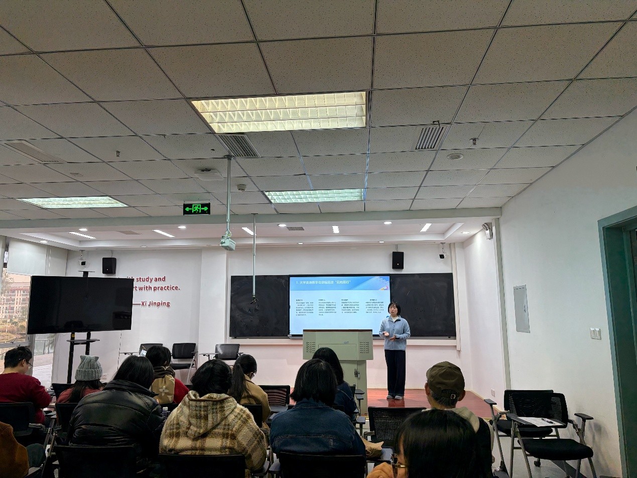 2025年12月18日下午,外国语学院在C5-106举办“外语课程思政案例的融合艺术与实现路径 ”专题教研活动。活动由外国语学院姬堃老师主讲,全院无课教师参会。