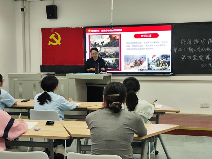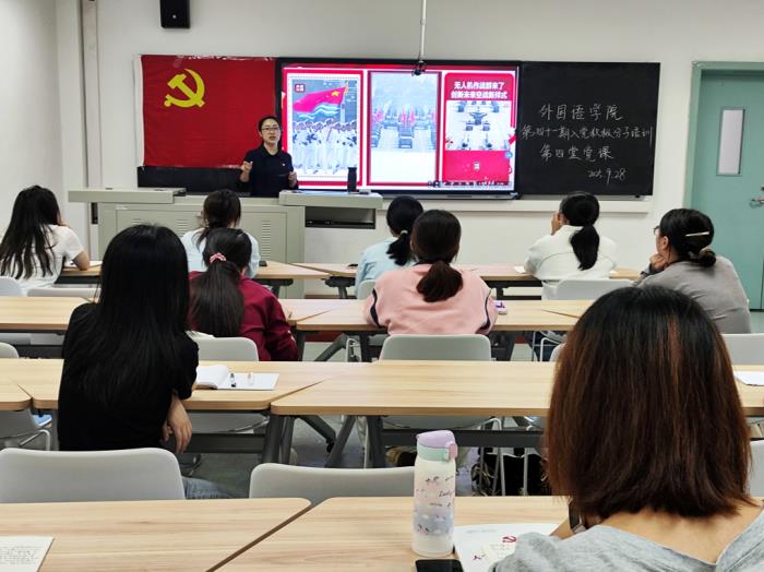 为深入推进爱国主义教育,引导学院师生从历史中汲取奋进力量,2025年9月28日,成都东软学院外国语学院分党委在C5-101顺利举行了外国语学院“第四十一期入党积极分子培训班第四堂党课”。本次党课由学院党委副书记周楚老师主讲,主题为 “铭记历史,吾辈自强 —— 从九三阅兵看吾辈之责任”。