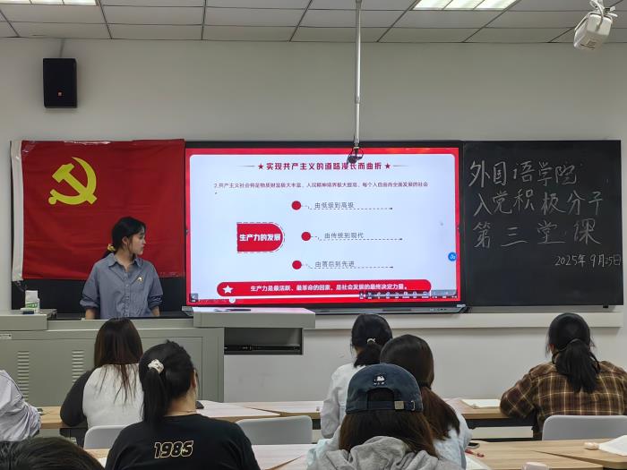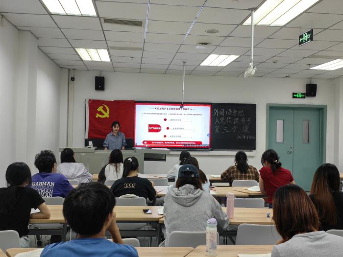 为了进一步加强对入党积极分子的理想信念教育,深化对党的性质、宗旨和最高理想的理解,引导青年学子坚定入党初心、传承红色基因。2025年9月25日,成都东软学院外国语学院分党委在C5-101顺利举行了外国语学院“第四十一期入党积极分子培训班第三堂党课”。