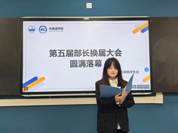 继往开来担使命,同心协力绘蓝图。在大会圆满闭幕之时,外国语学院学生会执行主席黄爔同学为新任部长团致以寄语。向新一届部长团表示衷心祝贺,并提出殷切期望。她指出,新任部长团应不忘初心、履职尽责、开拓创新,不断提升服务师生的能力与水平,助力学院各项事业迈向新高度。