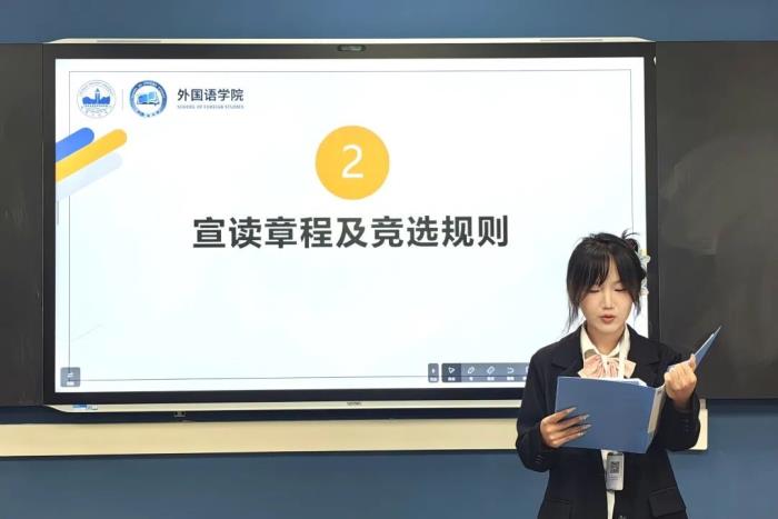 为确保本次换届选举的公正性,大会严格遵循《成都东软学院外国语学院学生会章程》的规定执行。在此框架下,外国语学院学生会主席秦梦瑶同学登台,正式宣读了选举相关规程。