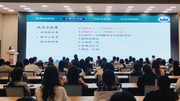 为助力同学们提前规划大学就业蓄力方向,有效规避成长中的常见误区,2025年9月18日20:00,外国语学院团委特别邀请大四优秀学生代表刘俊雯同学,在华天图书馆进行经验分享。刘俊雯同学凭借自身三年来在学校的成长积淀,从思想品德、专业学习、学科竞赛、社会实践四大维度分享经验,为学弟学妹们提供实用指引。