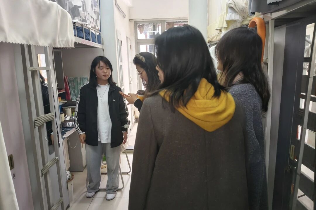 交流过程中,老师们与同学们亲切交谈,详细了解大家的学习进度、生活适应情况、寝室相处氛围及心理状态,认真倾听同学们的意见与诉求,并对相关问题逐一回应解答。针对集体生活中易出现的相处磨合、时间管理、情绪调节等问题,老师们耐心引导同学们学会包容互助、友好相处,让寝室成为温暖的小家,让同窗成为同行的伙伴,在彼此陪伴中共同进步,让宿舍成为充满正能量的成长阵地。