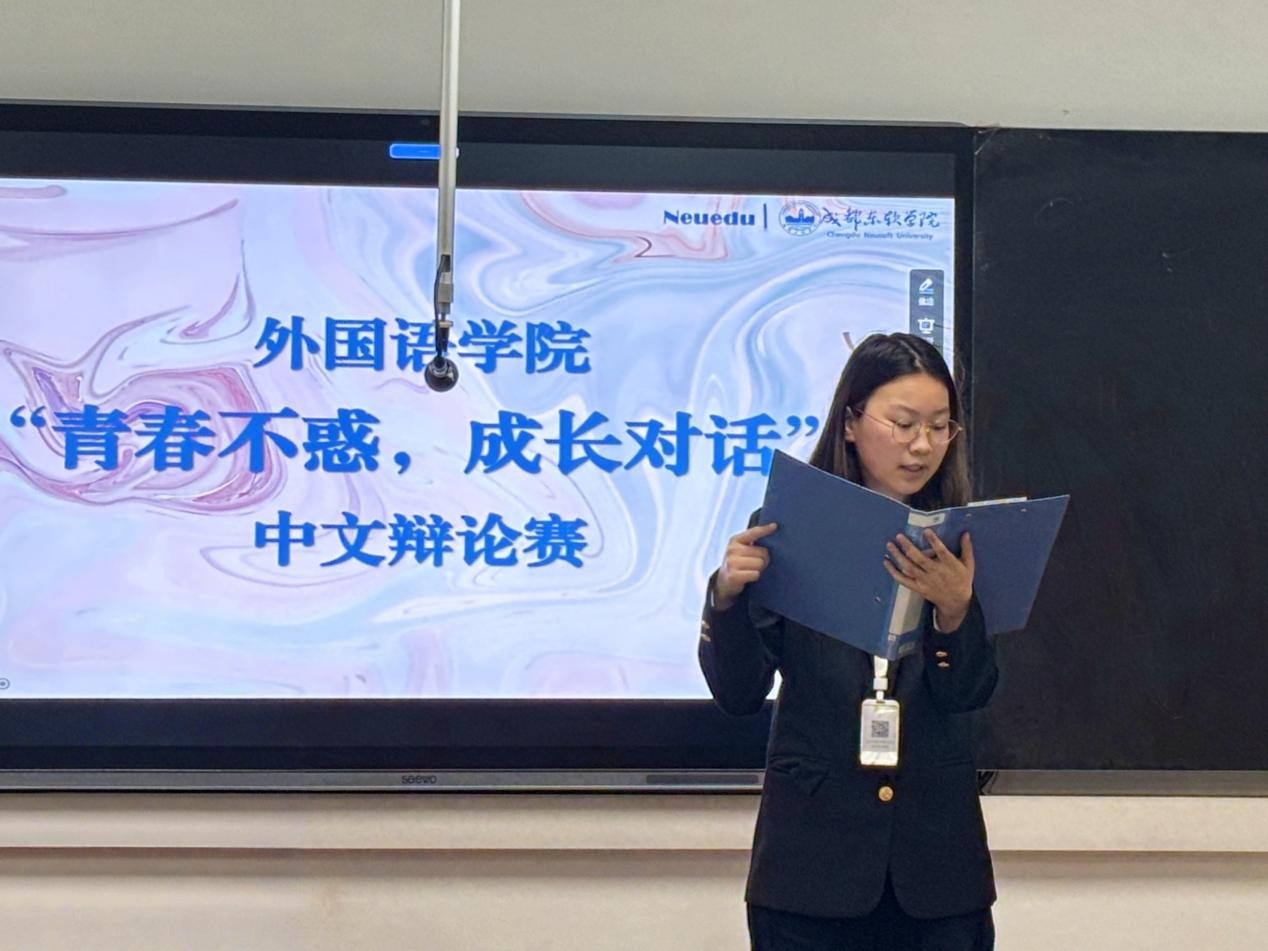 为丰富校园文化生活,提升学生思辨能力与语言表达素养,2026年3月30日20:50,外国语学院“青春不惑,成长对话”第十六届中文辩论赛复赛在C5-101顺利举办。经过初赛的激烈角逐,两支优秀队伍晋级赛场,围绕“未来职场中,外语专业人才会被 AI 翻译取代吗”这一前沿议题展开思想交锋与口才较量。