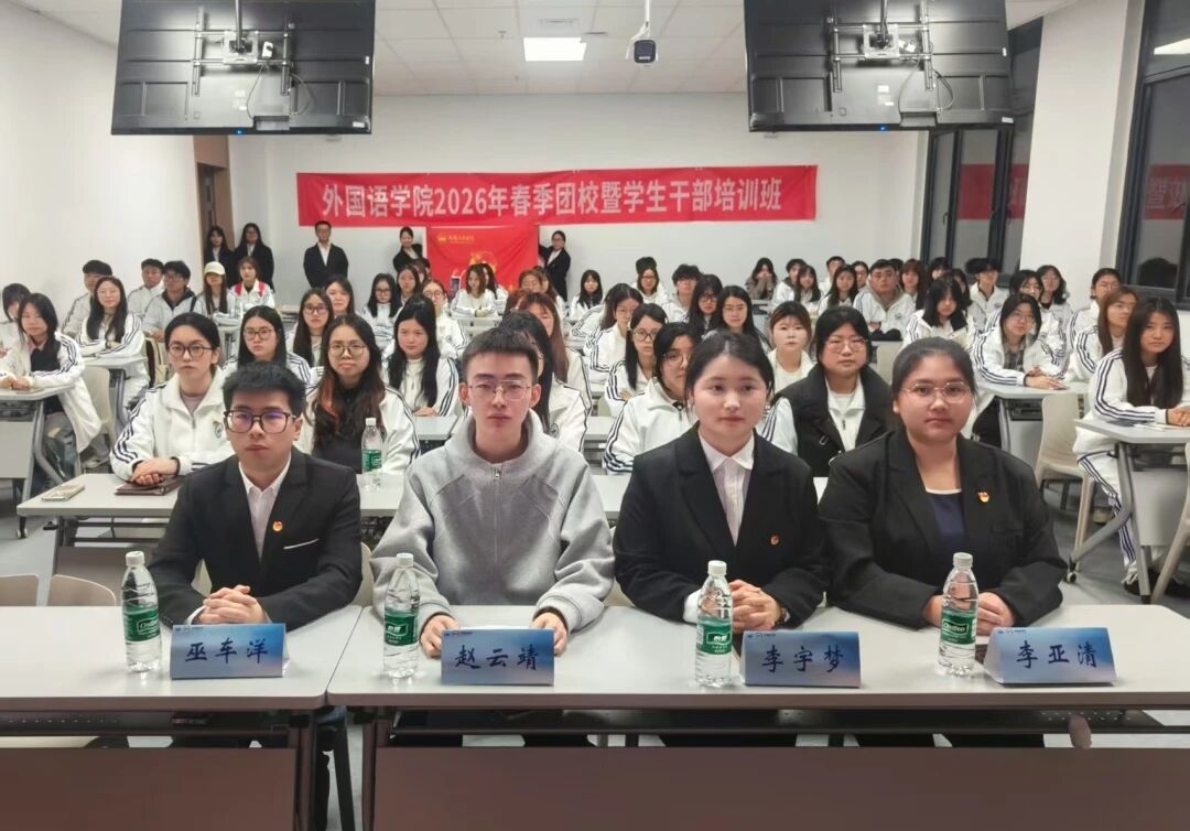 为深入学习宣传贯彻社会主义核心价值观,着力培养有理想、敢担当、能吃苦、肯奉献的新时代青年,2026年3月25日,外国语学院于E5-205教室开展2026年春季团校暨学生干部培训班第二堂团课。