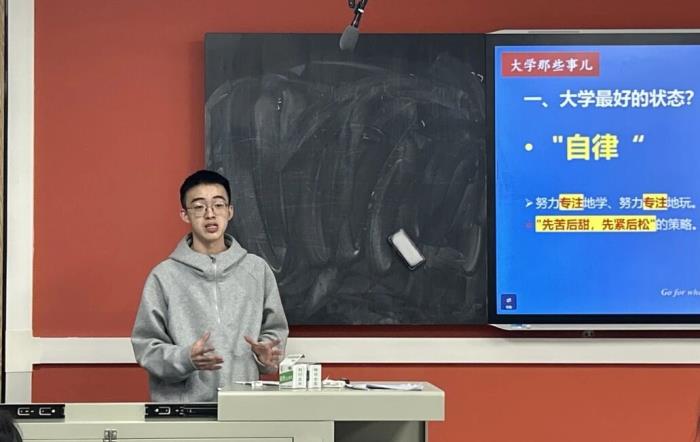 团课分享环节,赵云靖同学结合自身大学成长经历,以鲜活事例分享了学业与学生工作的平衡方法,以及在实践中提升综合能力的宝贵经验。同时,他紧扣外语专业特色,重点讲解了实用的学习方法与备考技巧,鼓励在场学员积极参与学科竞赛和各类实践活动,在比拼与历练中夯实专业基础、拓宽知识视野。