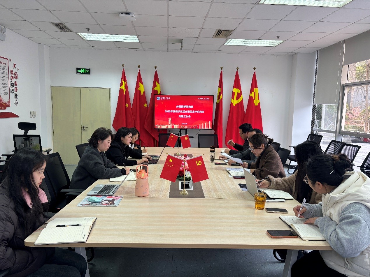 会议第二阶段,专题部署外国语学院2025年度组织生活会暨民主评议党员工作。周楚书记要求各支部紧扣主题,严格对照学校党委《2025年度基层党组织组织生活会和民主评议党员工作要求》,深入组织学习研讨,联系实际查摆问题,认真开展谈心谈话,严肃开展批评与自我批评,严格组织测评。她特别强调,学院党员干部要以普通党员身份参与教工党支部组织生活会,围绕“五个带头”深入查摆问题,严肃开展批评和自我批评,切实发挥示范引领作用,确保组织生活会开出高质量、好效果,民主测评公开、公正、公平。