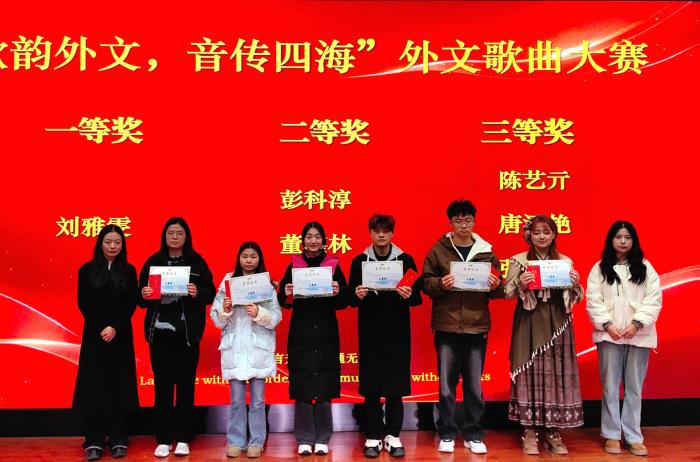 “歌韵外文,音传四海”外文歌曲大赛中,选手们通过多语种歌曲演唱,将语言学习与音乐表达相结合,展现了外语艺术的感染力与跨文化沟通的独特韵味。